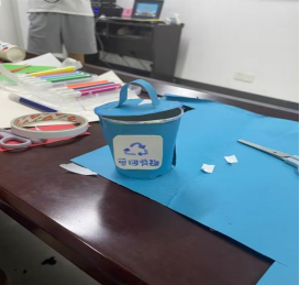 随后,志愿者们组织了一场手工制作活动,让小朋友们亲自动手制作垃圾分类相关的手工作品,教导孩子们利用可回收垃圾进行创意的手工制作,以强调可回收垃圾的重要价值。
