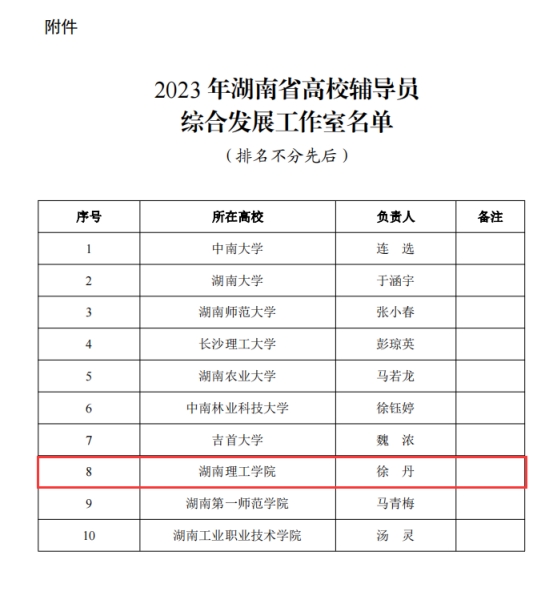 为鼓励和引导高校辅导员注重理论水平和素质能力的提升,注重探索创新理论研究和实践工作模式,加强团队合作与协同攻关,培育一批具有全国性影响力的高校辅导员,中共湖南省委教育工委、湖南省教育厅于2023年设立“湖南省高校辅导员综合发展工作室项目”。