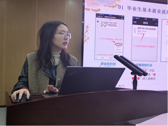 徐壮从毕业生就业指导中心和云就业平台、毕业生基本就业流程、就业材料要求、就业形势四个方面解说了毕业就业指导内容,为每一位毕业生指明方向。