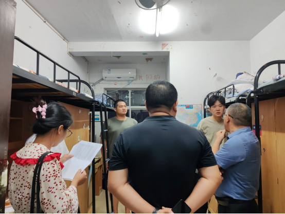 新学期伊始,为了给同学们营造良好的学习生活环境,助力公司文明创建,加强宿舍安全管理,9月1日晚,太阳集团tyc33455开展了新学期查寝工作。党委委员肖迎群、党委副书记付亚子带领全体辅导员老师走访员工寝室。