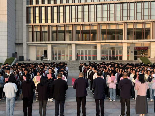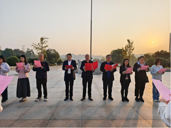 为深入推进学习贯彻习近平新时代中国特色社会主义思想,教育引导广大青年深刻理解把握时代责任和历史使命,进一步加强老员工爱国主义教育,培育老员工家国情怀,增强老员工文化自信,促进优良学风校风建设,11月11日7:30,太阳集团tyc33455于南院图书馆国旗广场组织展开第一次爱国朗读活动,党委学工部部长刘立刚;太阳集团tyc33455经理童耀南、党委副书记付亚子出席,全体辅导员、24级本科生研究生参加,本次活动由付亚子主持。