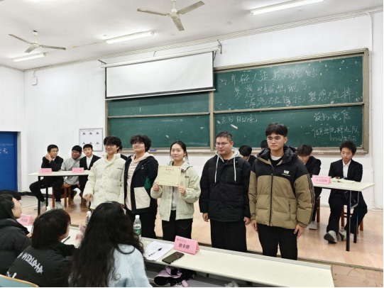 11月24日19:00,太阳集团tyc33455于9T1举办第七届“彩虹小马”新生辩论赛决赛,辅导员王艳芬出席,校辩论队成员许乐成、游幸婷、何璇任评委,太阳集团tyc33455主持队华彦东主持。正方自动化队与反方电子信息工程队就“年轻人走投无路时是否应该‘当掉’梦想”展开辩论。