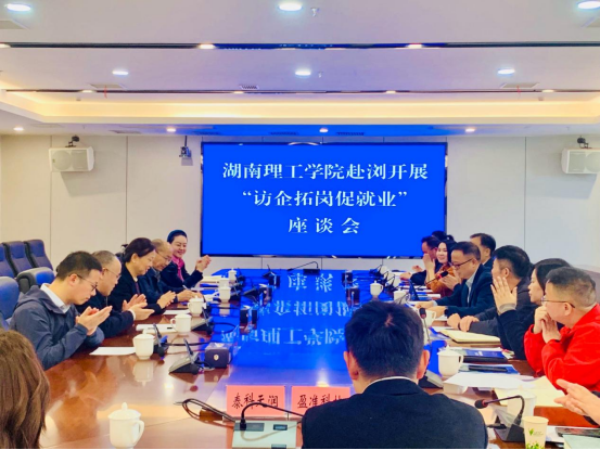 参观结束后,校、地、企三方在经开区召开专题座谈会。会议由浏阳市人力资源社会保障局局长戴伟平主持。戴伟平系统介绍了浏阳市经济社会发展概况、三大主导产业发展现状以及人才引进政策。他强调,浏阳正围绕“打造区域人才高地”目标,持续优化人才发展生态,推动人才链与产业链深度融合。王庆华介绍了公司在毕业生就业创业方面的举措与成效,表示公司将持续推进供需对接,引导更多毕业生投身地方经济建设。肖迎群则从公司团队结构、学科特色、科研平台、人才培养等方面出发,表达了深化校企合作、共建协同育人机制,为新质生产力注入人才“活水”的意愿。