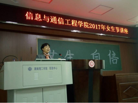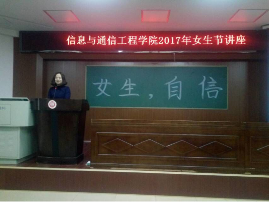 3月7日下午两点半,我院在6栋学术报告厅举办了以"自信"为主题的女生节讲座。心理健康教育咨询中心的王莉教授作为主讲人莅临本次讲座。参加本次讲座的有党总支副书记徐丹、各年级辅导员以及14、15、16级全体女生。