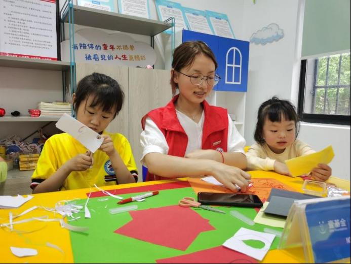志愿者们提前到达公司路小学,在孩子们放学后带领他们一起制作母亲节贺卡。孩子们在制作过程中充分发挥丰富的想象力,通过自己的绘画和剪纸表达对妈妈的爱,志愿者们也携手一起帮助孩子们在他们的贺卡上写下祝福。