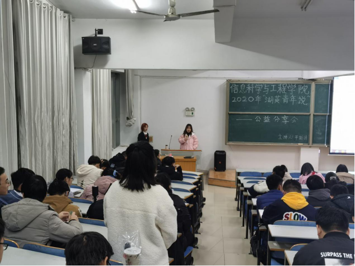 11月28日19:00,2020级湖英青年说公益分享会在15208举行。本次活动由李钟萱主持,平斯羽主讲。