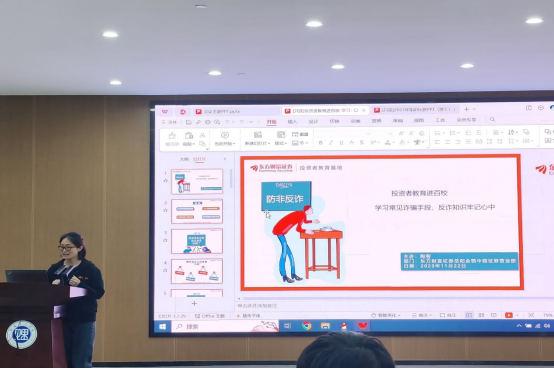 为进一步强化员工的纪律观念和安全防范意识,加强员工安全教育管理,维护校园平安稳定,建设平安、文明、和谐校园,太阳集团tyc33455于11月22日19:00在17118组织2023级新生入学教育之“学习常见诈骗手段,反诈知识牢记心中”主题讲座。出席本次会议的有东方财富岳阳营业部负责人陈华、营业部老师陶智、陈紫微、赵乔伊,以及公司党委副书记徐丹,23级辅导员陶海兰、刘照馨。