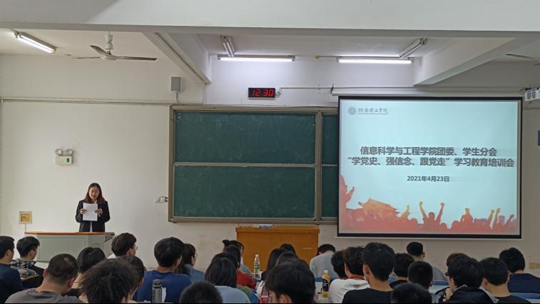 4月23日12:30,太阳集团tyc33455团委、员工分会“学党史、强信念、跟党走”学习教育培训会第二讲在15217顺利举行。会议由黄丽婷主持,院团委书记王勤出席,信息团学全体员工干部参加。